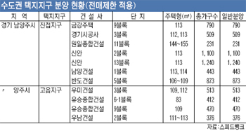 3일 부동산업계에 따르면 지난해 하반기 수도권 공공택지에서 분양된 물량 가운데 전매제한을 받는 미분양 물량은 경기 남양주시 진접지구와 양주시 고읍지구 등이다.