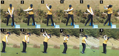 적당한 체중 이동이 이루어지는 안정된 백스윙을 하고 있다.