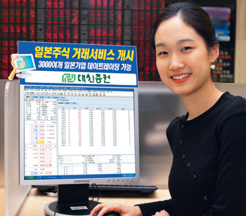 대신증권은 21일부터 국내 투자자들을 대상으로 도쿄증권거래소, 오사카증권거래소, 자스닥에 상장되어 있는 3000개 이상의 일본 기업 주식을 실시간으로 매매 할 수 있는 ‘일본주식 거래서비스’를 시작한다.