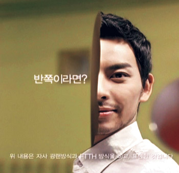 한편 지난 1월 촬영된 이번 광고 촬영에서는 ‘반쪽’으로 모든 서비스를 즐기는 모델의 얼굴도 절반으로 잘려 있는 효과를 주기 위해 얼굴 반쪽에 금을 긋고 촬영을 진행했다는 후문이다.