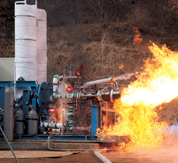 국내 연구진이 개발한 액체 메탄 로켓 엔진이 연소 시험에 성공했다.