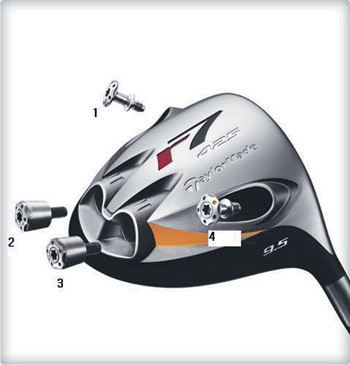 <사진>과 같이 드라이버의 헤드 4곳에 무게추를 바꾸는 곳이 있는데 만일 2, 3번에 무거운 추를, 1, 4번에 가벼운 추를 넣으면 무게 중심이 뒤로 놓이면서 탄도가 높은 뜨는 볼이 나오게 된다. 반대로 2, 3번에 가벼운 추를, 1, 4번에 무거운 추를 넣으면 탄도가 낮은 볼이 나올 수 있다. 아울러 샤프트 쪽인 3, 4번에 무거운 추를 넣고 1, 2번에 가벼운 추를 넣으면 드로 구질이 생겨 슬라이스로 고민하는 골퍼들에게 도움이 되며 1, 2번을 무겁게, 3, 4 번을 가볍게 하면 페이드 구질이 생겨 훅이 나는 골퍼들이 효과를 볼 수 있게 된다.