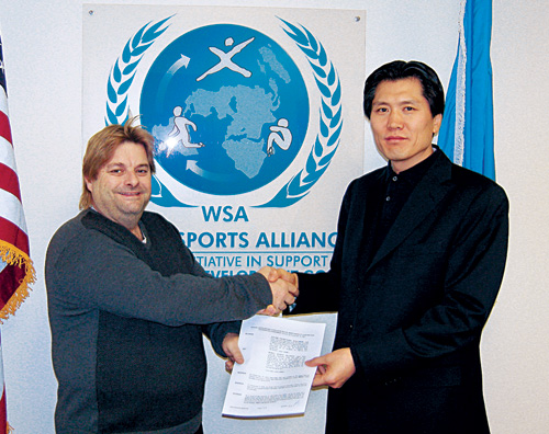친환경 인조잔디 전문기업인 ㈜에이피더블유(APW·회장 이진희)는 최근 유엔 경제사회이사회 산하 월드스포츠얼라이언스(WSA)와 무충진 인조잔디 ‘엑셀터프’(XL Turf) 제품에 대한 공급계약을 했다고 13일 밝혔다. 계약금액은 총 10억달러(약 1조원·2749만㎡ 규모)로 올해부터 2017년까지 10년간 전세계 130개국, 총 6874개 WSA 교육 체육센터에 제품을 독점 공급하게 된다. WSA측도 최근 홈페이지를 통해 이 같은 내용을 공식 발표했다. WSA는 전 세계 빈민 저소득층을 위한 스포츠 기반구축과 교육 개발사업 지원을 목적으로 설립된 기구.