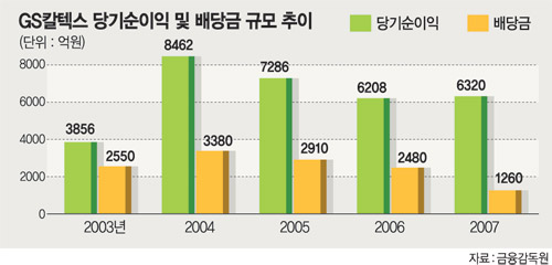 14일 관련업계에 따르면 GS칼텍스는 셰브론에 올해 630억원의 배당금을 지급했다. GS칼텍스의 대주주인 셰브론사가 지난 10년간 챙긴 배당금 총액은 모두 8335억원이다.