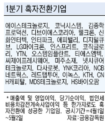 그 외에 CNH캐피탈과 HS바이오팜, 코닉시스템, 김종학프로덕션, 신화인터텍, 인터파크, 인스프리트, YTN, 다사로봇 등도 적자탈출을 공시한 후 당일 오르거나 다음날 상승하는 등의 오름세를 나타냈다.