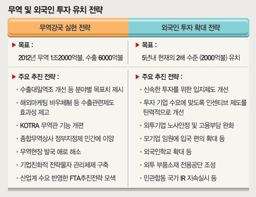 정부는 2012년 무역 1조2000억 달러, 외국인투자 유치 200억 달러 달성이라는 ‘장밋빛’ 목표를 내놓았지만 실현 가능성은 의문이다.