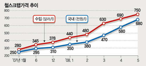 지난해 초 t당 280달러, 연초만 해도 440달러였던 가격이 이처럼 급등한 데는 중국과 인도 등 신흥시장의 수요가 크게 늘어난 데다 국제원자재 가격 상승세가 꺾이지 않고 있기 때문이다.