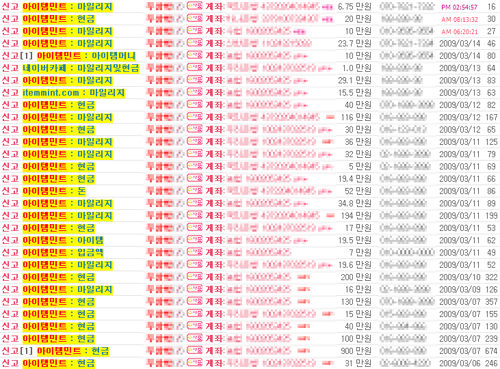 | ▲ 이용회원 20만명에 달하는 게임 아이템 중개업체인 ‘아이템민트’가 아이템 구매와 판매 과정에서 쓰이는 ‘마일리지’를 환급하지 않은 채 일방적으로 사이트를 폐쇄했다. 인터넷 사기피해 신고사이트에 등록된 피해자들 리스트. |