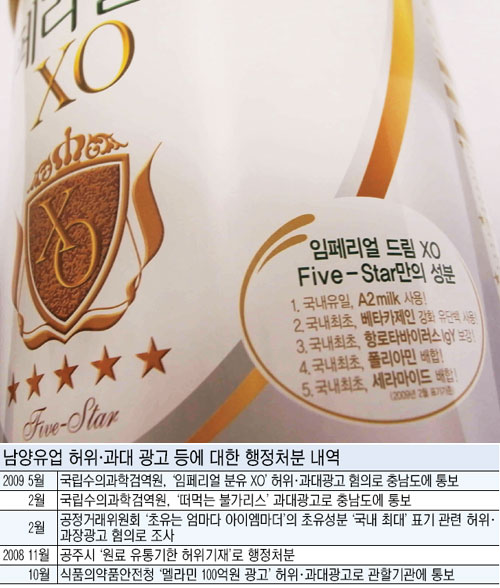 검역원은 남양유업이 ‘임페리얼 분유 XO’ 제품 포장에 표시한 ‘국내 유일, 국내 최초’ 광고문구가 허위·과대광고에 해당된다고 판단, 축산물가공처리법에 따라 적절한 조치를 취할 것을 지난달 충남도에 요청했다.