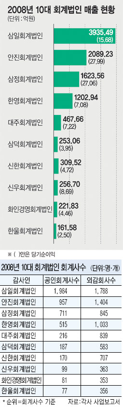 회계법인들이 내우외환에 시달리고 있다. 지난해 9월 발생한 글로벌 금융위기로 순이익이 뚝 떨어진 데다 국제회계기준(IFRS) 전면 도입을 앞두고 회계사(CPA)를 대거 뽑았지만 일감도 줄어 유휴인력이 넘쳐나기 때문이다.