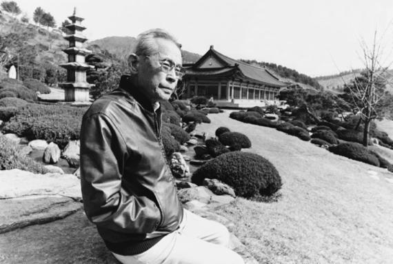 | ▲ 생전의 호암 이병철이 경기도 용인에 위치한 한옥에서 생각에 잠겨 있다. 호암은 만년에 이곳을 찾아 사업구상 등 생각을 정리하곤 했다고 한다. |