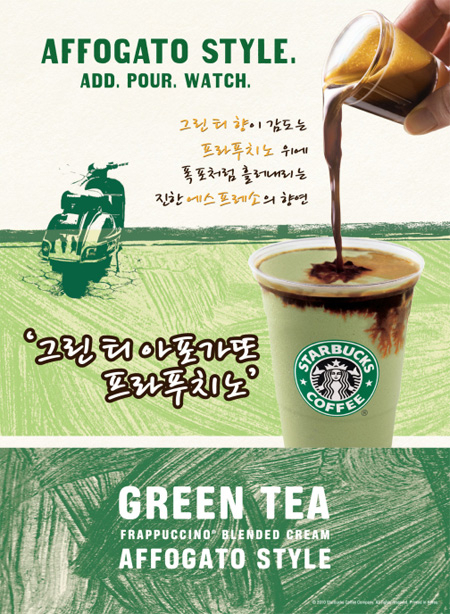 스타벅스커피 코리아가 직원과 고객들의 아이디어로 탄생한 '그린 티 아포가또 프라푸치노'를 전세계 스타벅스 중 한국에서 최초로 3일 선보인다.