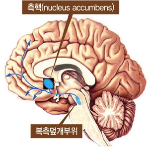 한국과학기술연구원(KIST) 신경과학센터 정수영 박사는 "측핵은 인간의 뇌에서 쾌락을 담당한다. 측핵을 뇌의 다른 부위와 연결하는 것은 '중뇌변연피질계도파민성경로'"라고 설명했다.
