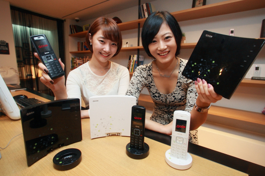| ▲ KT는 무선랜(Wi-Fi)을 기반으로 하나의 전화 단말기 안에서 인터넷전화와 집전화(PSTN) 기능을 함께 제공하는 ‘쿡허브폰’을 출시했다고 17일 밝혔다. KT 모델들이 쿡허브폰과 무선랜 공유기 ‘쿡허브’를 소개하고 있다. |