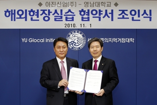영남대는 1일 오전 대학 본관 3층 대회의실에서 아진산업㈜(대표이사 서중호)와 해외현장실습에 관한 협약을 체결했다고 밝혔다.