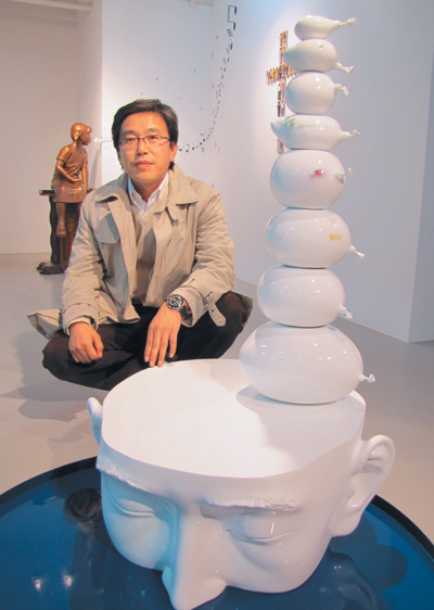 | ▲ 지난 3일 서울 삼청동 fnart스페이스에서 제23회 소조각회전이 열렸다. 드림&아바타 주제전에 'Life-욕망'을 출품한 소조각회 회장 권치규. |