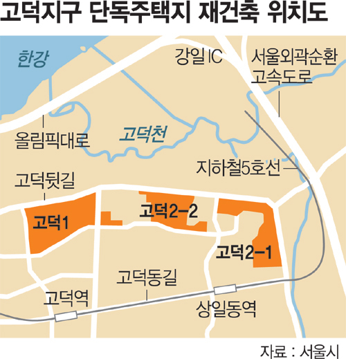 이번에 재건축에 들어가는 고덕1, 고덕2-1, 고덕2-2지구는 1981년 4월 고덕택지지구에 포함돼 단독주택지 및 중·저층 아파트단지, 일부 고층아파트단지로 조성됐던 곳으로 서울 동쪽 끝 변두리에 위치해 슬럼화 우려가 있는 점을 감안해 이번에 고층아파트로 개발할 수 있도록 구역지정하게 됐다고 서울시는 설명했다.