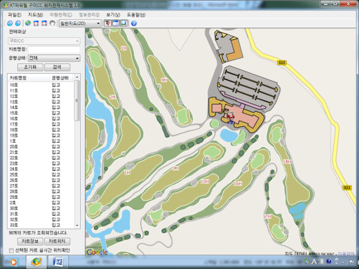 | ▲ KT파워텔 ‘PPS(Powertel Position Service)’를 적용한 골프장의 위치관제 운영 상황 화면. |