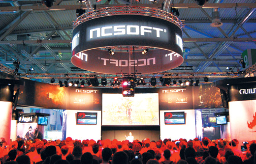 | ▲ 엔씨소프트는 지난 2010년 8월 독일 쾰른에서 열린 유럽 최대 게임전시회'게임스컴'에 참가했고 엔씨소프트의 자회사 아레나넷이 개발한 '길드워2'는 '최고의 온라인 게임상'을 수상했다. 게임스컴 전시장 내부에 설치된 엔씨소프트 부스. |