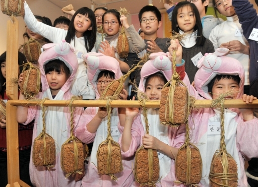 농협은 18일 서울 충정로 농업박물관 기획전시실에서 초등학생 메주 만들기 체험행사를 열었다.
