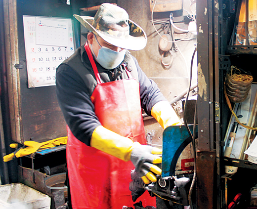 전씨가 칼을 갈기 시작한 것은 열네 살 때. 대장간을 운영하는 아버지의 권유에 의해서다. 그의 칼 가는 솜씨는 어렸을 때부터 남달랐다. 불과 2년 만에 아버지의 실력을 뛰어넘어 입소문을 타게 돼 모든 손님의 칼을 도맡아 갈게 되었다. 그렇게 칼을 갈아온 세월이 올해로 40년째다.