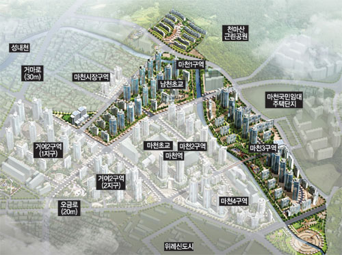 한편 마천1·3구역 재정비촉진계획 변경은 송파구에서 25일부터 오는 3월 11일까지 주민공람 절차를 거쳐 3월 말에 서울시가 결정, 고시하게 된다. 사업은 구역별로 추진위원회 설립 및 조합설립인가, 사업시행인가 등의 과정을 거쳐 추진하게 된다. 거여 2-1구역은 2009년 조합설립이 인가된 지역으로 서울시가 3월 초 재정비촉진계획 변경을 결정, 고시하면 곧바로 건축심의 등의 절차를 밟아 개발사업에 들어가게 된다.