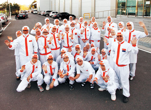 | ▲ 아티제블랑제리 직원들이 경기 안성 생산공장 앞에서 기념촬영을 하고 있다. |
