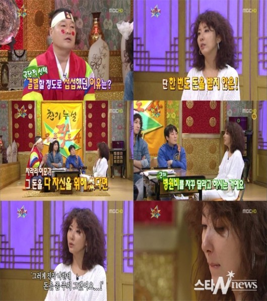 김완선은 13일 방송된 MBC ‘황금어장-무릎팍도사’에 출연해 자신의 매니저였던 故 한백희에게 수익금을 한 푼도 받지 못한 사연을 털어놨다.