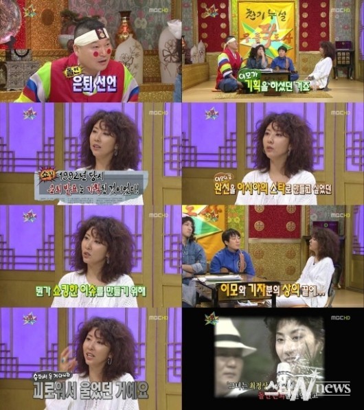 김완선은 지난 13일 방송된 MBC ‘황금어장-무릎팍도사’에 출연해 1992년 당시 은퇴발표는 기획된 것이었다고 깜짝 고백했다.