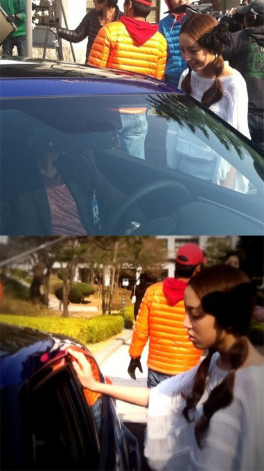18일 한 온라인 커뮤니티 사이트에 ‘구하라 시티헌터 촬영장 직찍’이라는 제목으로 두 장의 사진이 공개됐다.