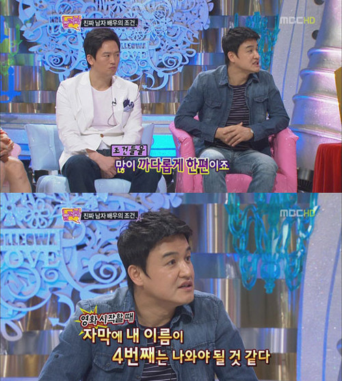 18일 방송된 MBC ‘유재석 김원희의 놀러와’ ‘진짜 남자의 자격’ 편에서 5월 개봉예정인 영화 '체포왕'에 함께 출연한 명품 남자배우로 꼽히는 박중훈, 이선균, 김정태, 이성민 등이 출연했다.
