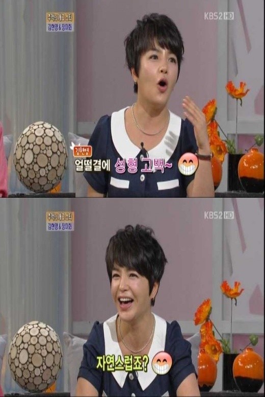 21일 방송된 KBS 2TV '여유만만'에 출연한 김현영은 자신의 별명이 생기게 된 배경을 설명하던 중 얼떨결에 성형 사실을 털어놨다.