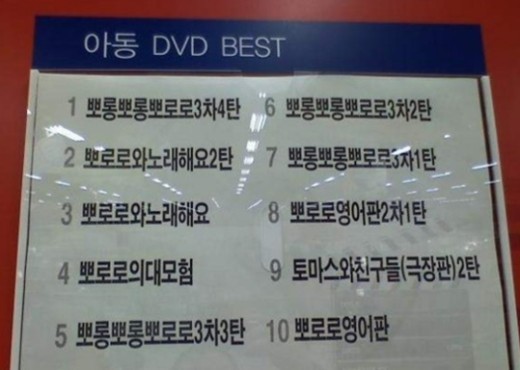 김연아 우표보다 많이 팔린 수치다. 국내 아동 DVD 부문에서도 상위 10개 순위 중 거의 모두를 뽀로로가 차지했다. 뽀로로의 인기가 아이들에게 얼마나 큰 지 실감케 하는 대목이다./humaned@fnnews.com 남형도기자