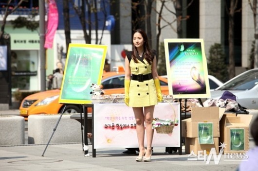최근 진행 된 SBS 새 수목드라마 ‘시티헌터’ 촬영 현장에서 박민영은 화사한 노란색 미니 원피스와 노란색 장갑까지 착용한 채 광화문 광장 한복판에 등장했다.