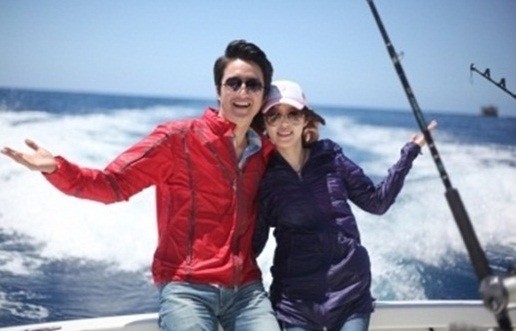 사진 속 정준호와 이하정은 나란히 청바지에 붉은 계열과 보라 계열의 방풍 재킷을 코디했고, 두 사람은 선상에 올라 푸른 바다를 배경으로 다정한 포즈로 환하게 웃고 있어 신혼 부부 특유의 상큼함을 강조했다.