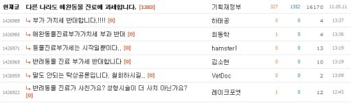 | ▲ 포털 Daum캡쳐화면. 기획재정부의 애완동물 진료 부가세 과세 정책에 대해 반대하는 댓글들이 끊이지 않고 있다. |