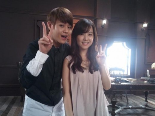 사진 속 양요섭과 박보영은 뮤직비디오 촬영 현장을 배경으로 손가락으로 브이를 그리며 다정한 포즈로 환하게 미소 짓고 있다.
