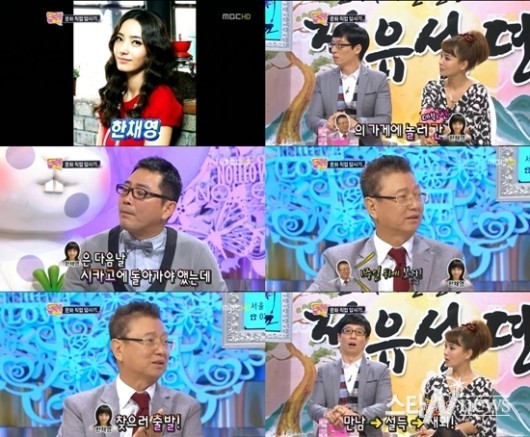 전유성은 인사동에서 가게를 할 당시 자신의 가게에 놀러온 한채영의 아름다운 외모에 ‘어떻게 우리가게에 왔지, 일단 사진 한 번 찍자’는 심정으로 한채영의 사진을 찍었다고 전했다.
