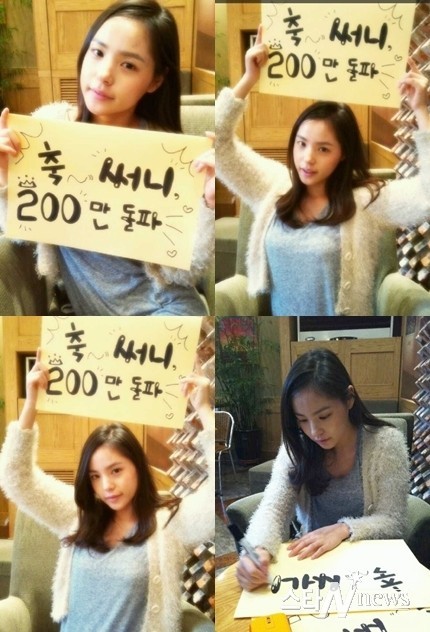배우 민효린이 영화 ‘써니’ 개봉 15일만에 전국 누적 관객수 200만명 돌파를 기념하며 자축했다.