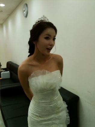 사진 속 홍진영은 순백의 톱 드레스를 입고 머리에 티아라로 장식해 심플하면서 아름다운 모습이며 귀엽고 깜찍한 표정을 짓고 있다.