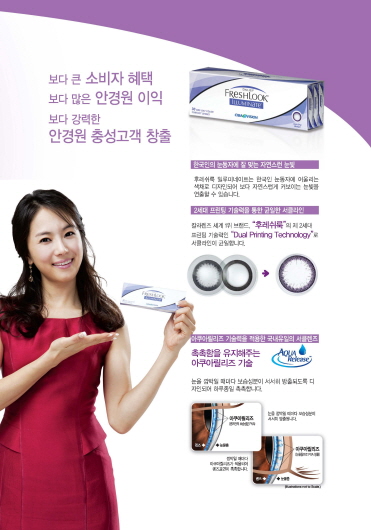 또한 눈 건강이 중요한 만큼 소비자들에게 선보이는 하루착용 서클렌즈인 후레쉬룩 ‘일루미네이트’는 아쿠아릴리즈 기술력을 이용해 눈을 깜박일 때마다 보습성분인 PVA가 지속적으로 방출돼 하루종일 촉촉함이 적용된 렌즈이다.