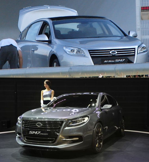 | ▲ (상)다음 아고라에 게재된 르노삼성 신형SM7 사진. /사진=다음 아고라 (하)2011 서울모터쇼에 공개된 SM7콘셉트카. /사진=이다일기자 |