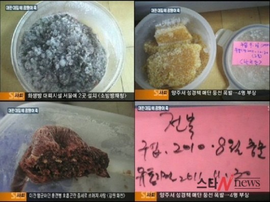 지난 10일 SBS는 “서울형 어린이집 냉장고에서 시커멓게 곰팡이가 피어 있는 쇠고기 죽이 발견됐고 구입한 지 9개월이 넘은 데다 유통기한도 알 수 없는 전복과 날치알이 나왔다”고 보도했다.