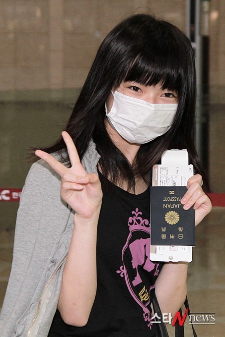 일본의 걸그룹 AKB48의 멤버 시마자키 하루카가 출국하고 있다.