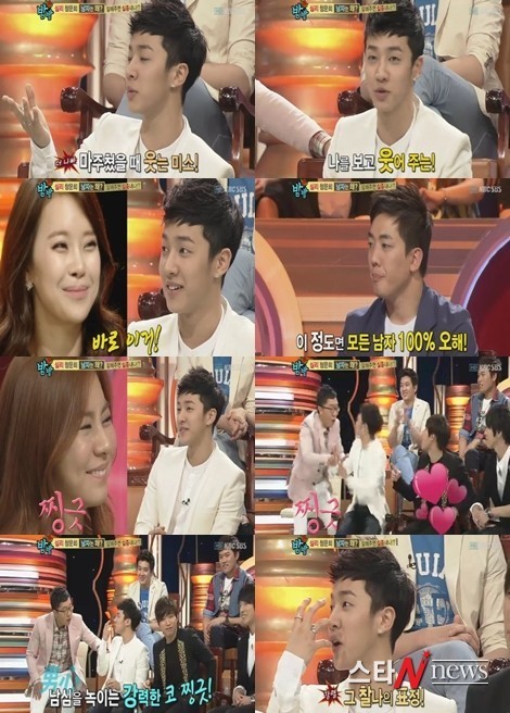이어 이기광은 “저거야 저거!”라며 “남자들은 서로 인사하는 그 찰나의 순간에 집착 한다”고 말하자 레이디 제인은 “나는 원래 잘 웃는다”며 “마음이 있어서 웃은 게 아닌데 어떻게 이렇게 오해를 할 수가 있느냐”고 하자 남자들은 “코만 찡그리지 않으면 된다”고 말해 스튜디오를 폭소케 했다.