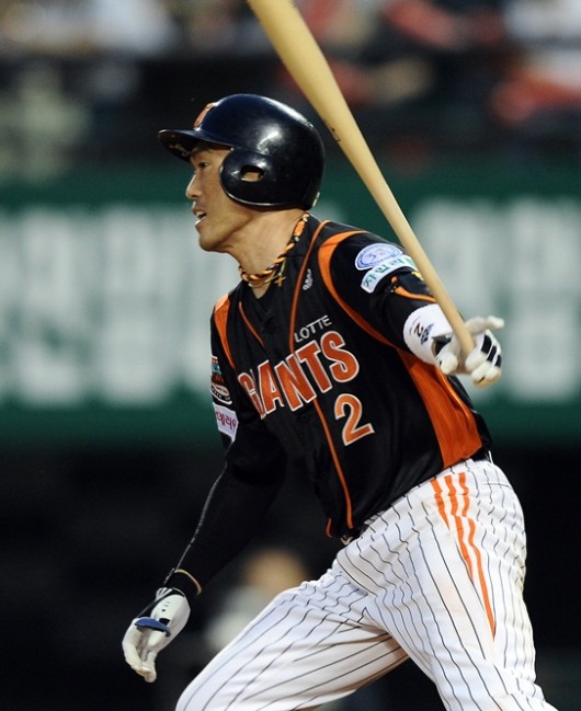12일 사직구장에서 열린 '2011 롯데카드 프로야구' 한화 이글스와 롯데 자이언츠의 경기에서 롯데는 6회말 황재균의 1타점 희생플라이와 조성환의 스리런포에 힘입어 4득점했다.