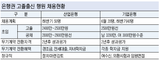 산은은 이번에도 고졸자 50명을 전원 정규직으로 선발키로 했다. 계약직으로 뽑으면 고졸자들을 실망시킬 수 있다는 점을 우려했다는 후문이다. 강만수 산은지주 회장도 금융업계에 고졸 직원 채용을 확산시키려면 산은이 앞장서서 정규직을 뽑을 필요가 있다고 강조한 것으로 전해졌다.