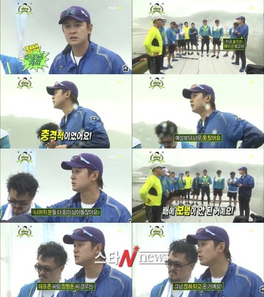 하지만 이는 유재석과 정진운이 끝까지 페이스를 유지한 결과로 김지호 조정코치는 "레이스 보고 충격이었다. 예상보다 너무 못탔다"며 멤버들을 질책했고 정형돈과 데프콘을 지목해 "그냥 얹혀 타고 온 거다"라는 독설했다.