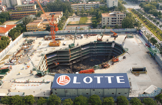 ■사진설명=베트남의 랜드마크 빌딩으로 자리매김할 롯데센터 하노이는 지리적으로도 구도심과 신도심의 중간에 위치해 가교역할을 담당하게 된다. 막바지 기초공사가 한창 진행 중인 롯데센터 하노이 현장.