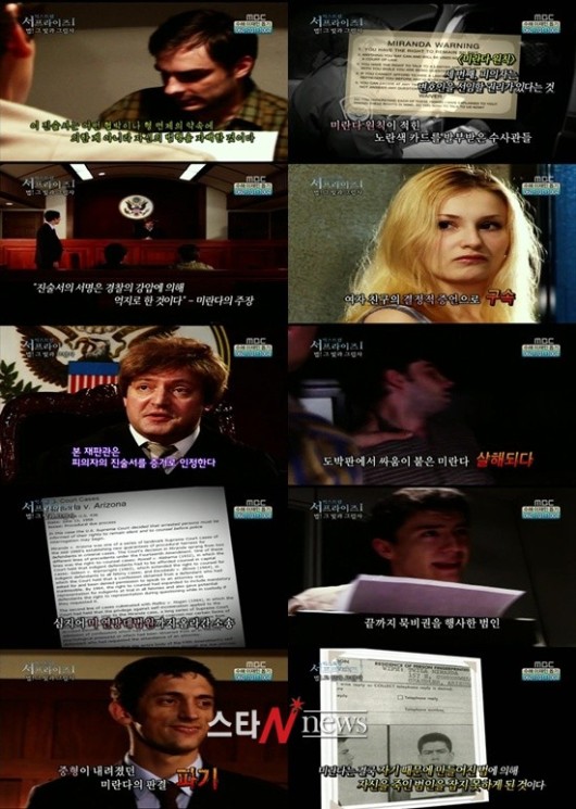 31일 방송된 MBC '신비한TV 서프라이즈'에서는 '미란다 원칙'의 제정배경과 더불어 범죄자 미란다의 '인과응보'적 죽음의 비밀이 공개됐다.